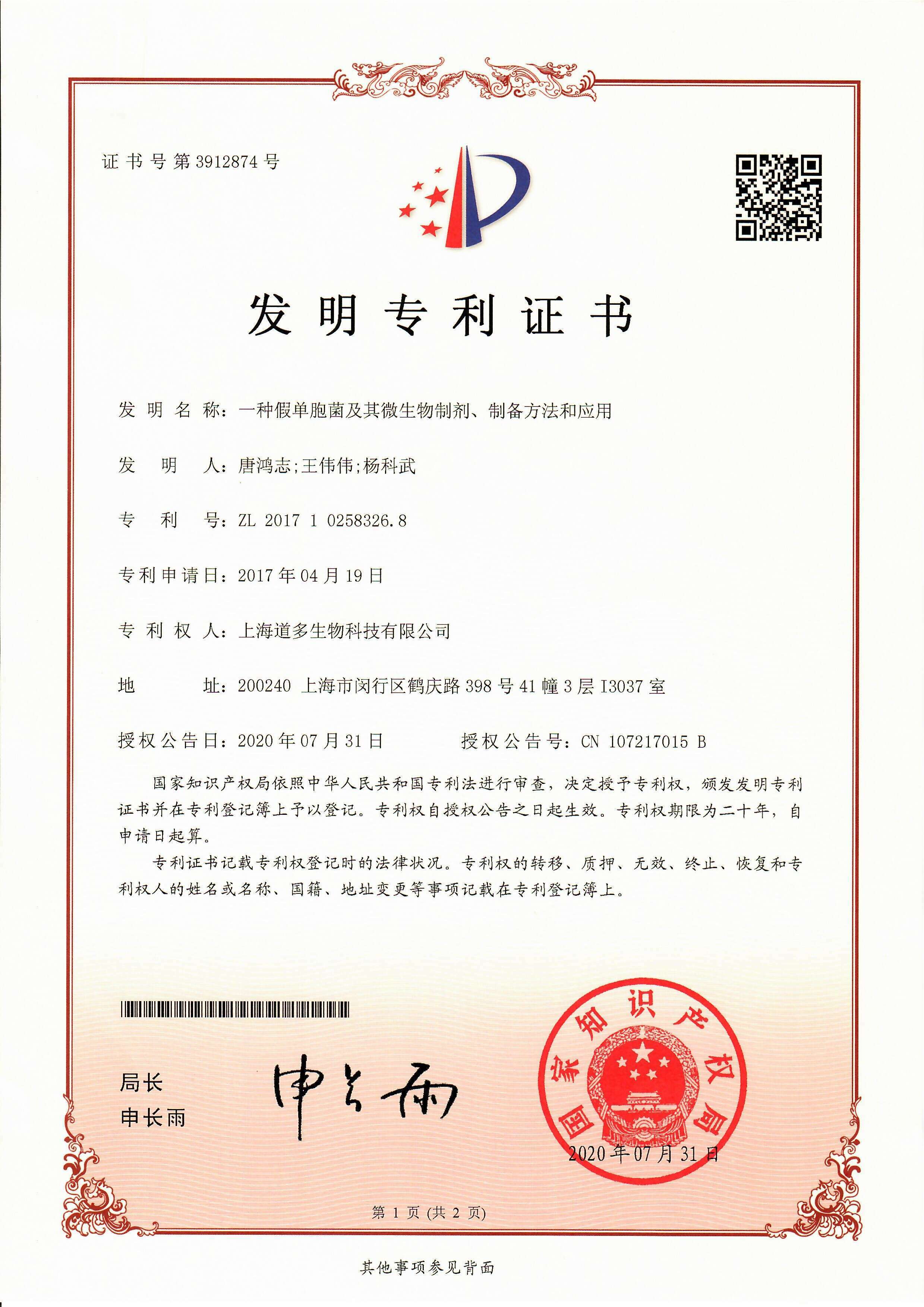 发明专利证书
